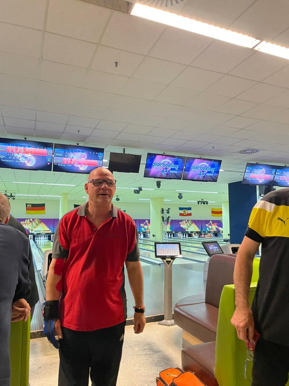 Am Montag und Dienstag war es schon vor allem mental anstrengend. 12 bzw. 13 Stunden lang arbeiteten Augen und Ohren auf Hochtouren, um ja keine Meldung der Spielerinnen und Spieler zu umgefallenen Pins, Pins in der Rinne, nicht wiederkommenden Bällen schnellstmöglich an den Counter zu melden. Die Ergebniskorrekturen wurden nur von unserem Schiedsrichter Ralph Fels gemacht. Da er am Montag kein Funkgerät hatte und ich auf der linken Seite der Anlage war, bin ich schon das ein oder andere Mal hinter im her gerannt, wenn er auf der rechten Seite war. Und da hatte Ali Krüger alles im Blick.